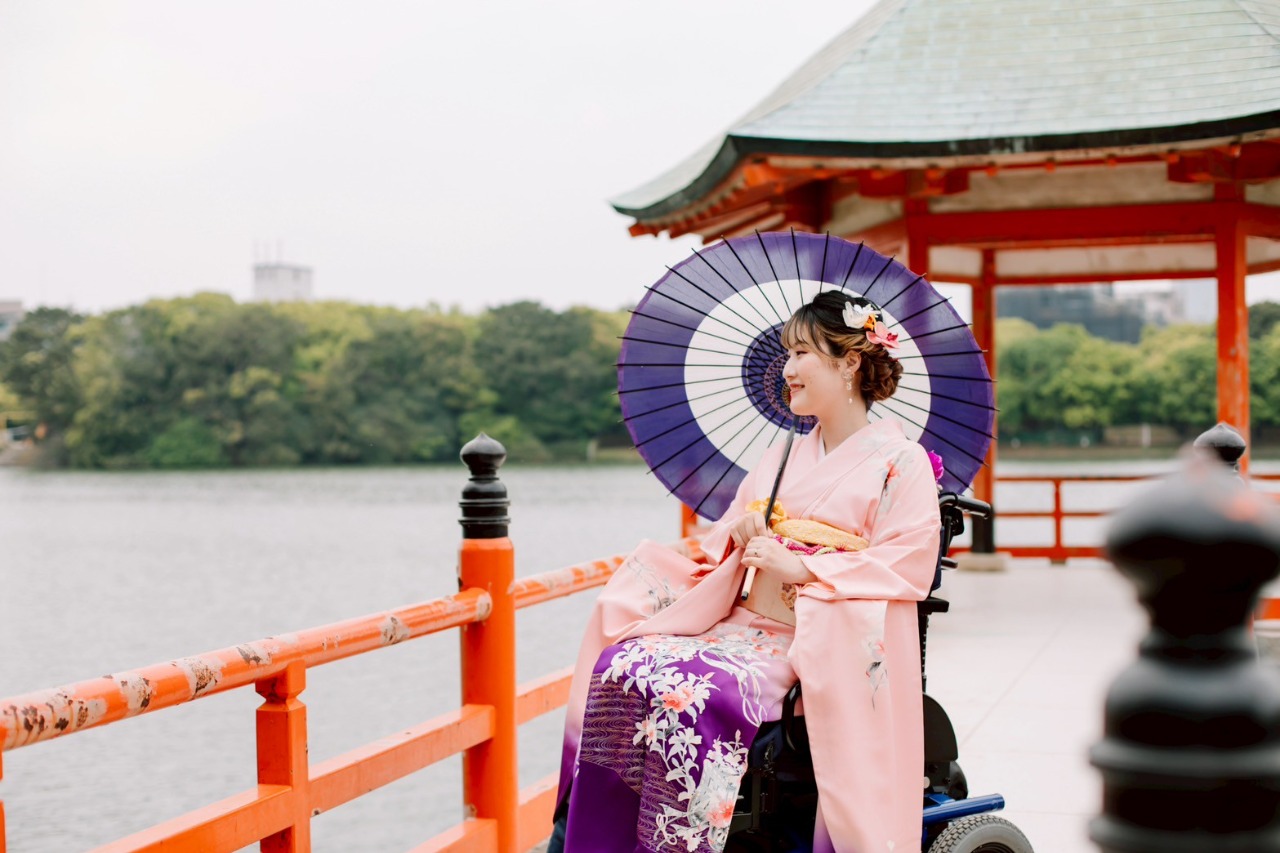 車いすや寝たままの方でも日本の伝統文化である着物を楽しんでいただきたい!という思いで活動しています。 大切なお着物を切ったり傷めることなく、車いすに座ったまま、べッドに横になったままでも着付けができます。 どんたくでは、車いすの方や外国人の方でも老若男女問わず、和装ファッションをボーダーレスに楽しんでいる様子をご覧いただければと思います。