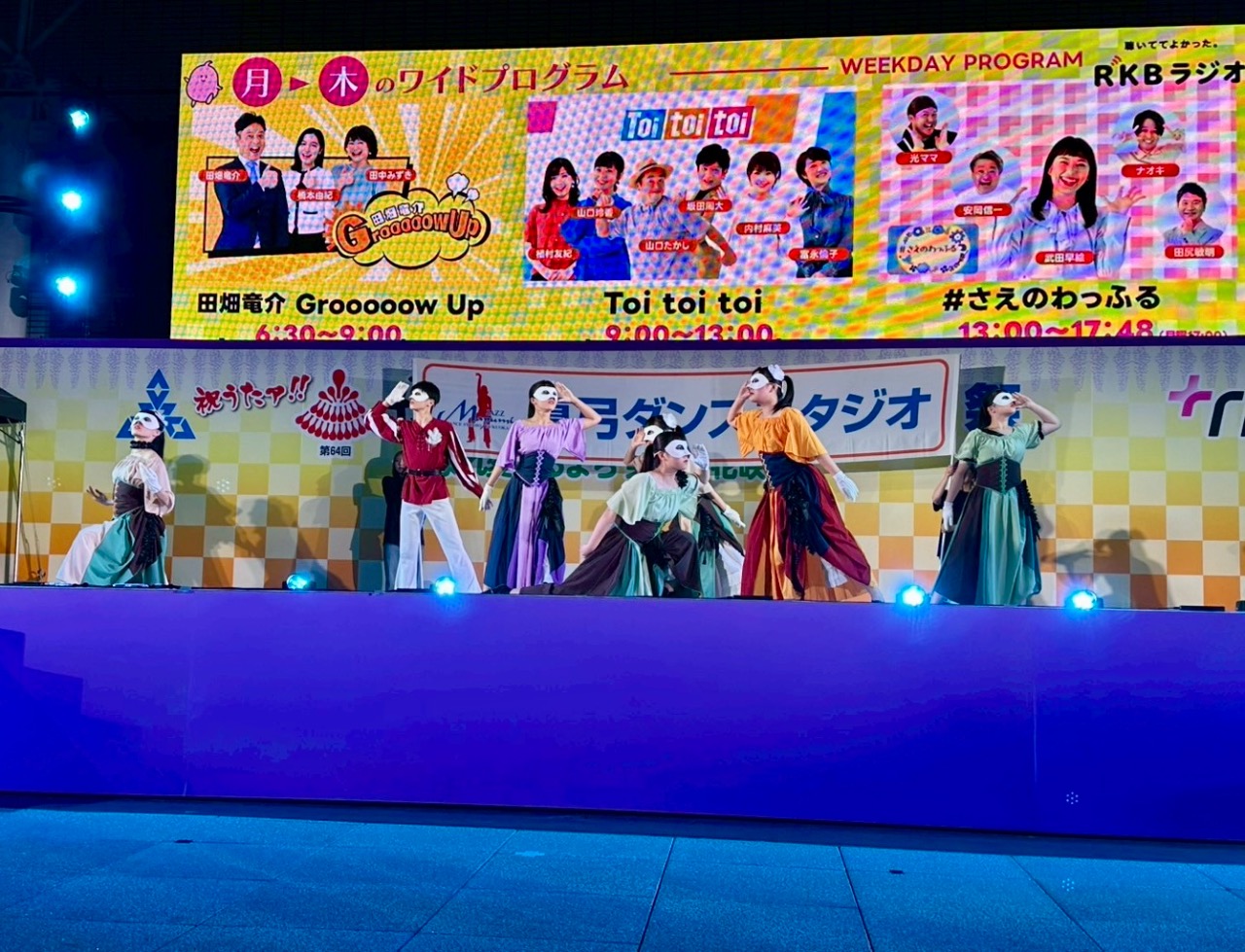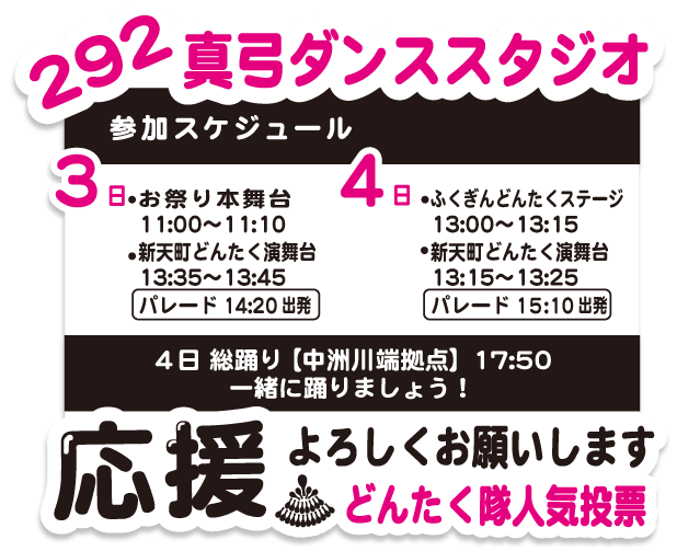 無事に入賞旗返還と、パフォーマンスを終えることができました✨ 残り本日3日と4日の総踊りまで、精一杯頑張ります❣️入賞旗返還式パフォーマンスの様子出番待ち…どきどきたくさんのお客様の前で披露させていただきましたどんたく隊人気投票4日まで292真弓ダンススタジオよろしくお願いします(外部リンク)