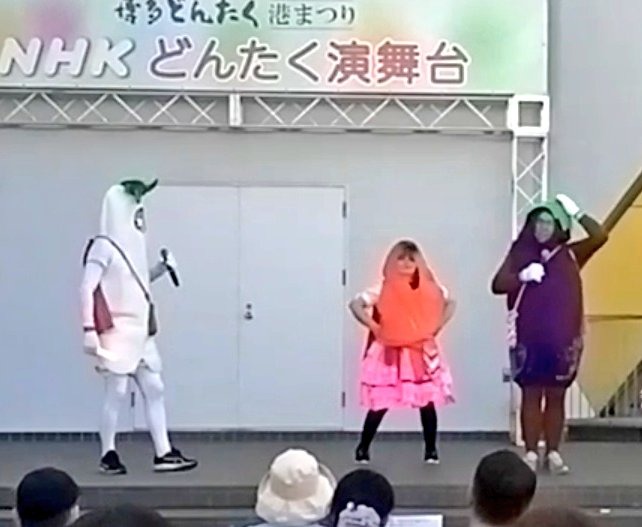 バス🚌💨でトコトコやってきたのは NHKどんたく演舞台❣️ 天神や博多からは少し離れていますが、 こちらもまた色んなイベントがあっていて すごく賑わっていました✨✨✨ さくらもちオールスターズ大暴れ🌸🍡🍅🌽🥒🍆🍅🌽🥒🍆🍅🌽🥒🍆🍅🌽🥒🍆 司会のお姉さんも大歓迎して下さり とてもしあわせなわたしたちです❣️