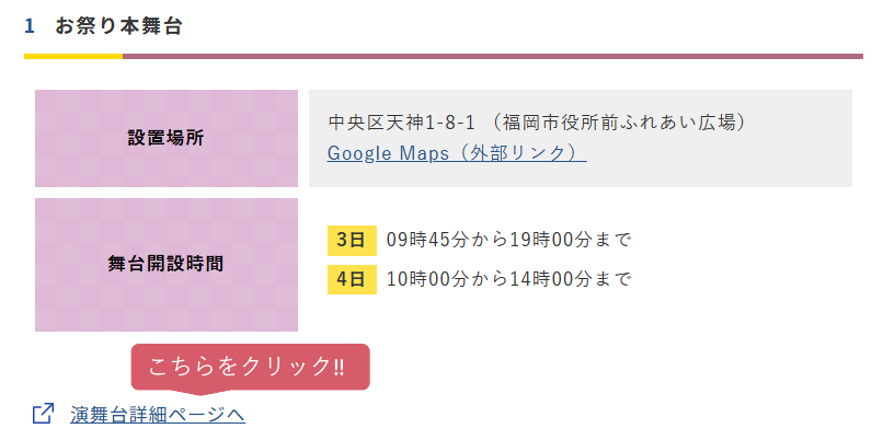 なお、各演舞台のプログラムは「演舞台詳細ページへ」よりご確認ください。(👇例)