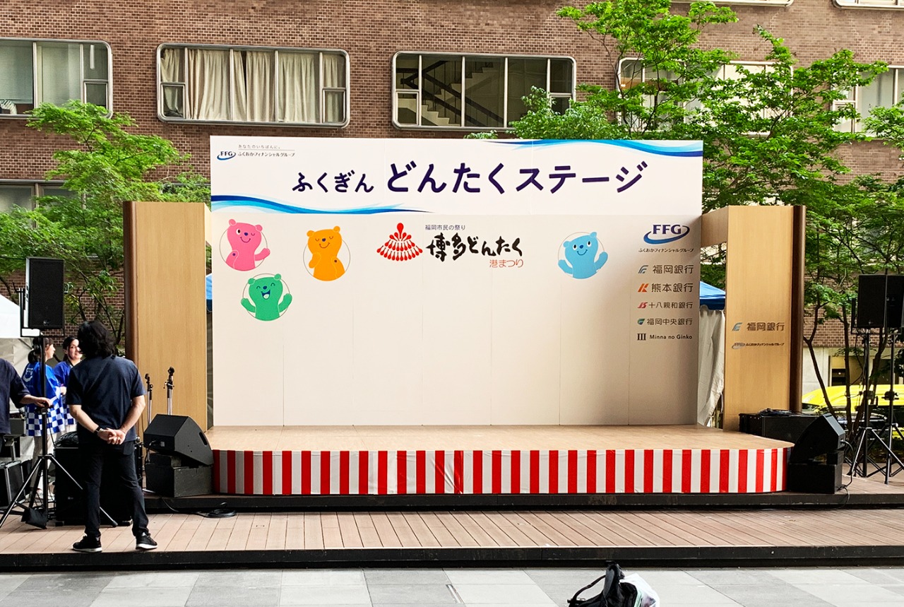 天神の真ん中に位置する福岡銀行本店の中庭広場は、緑に囲まれた都会のオアシス。コーヒーを飲みながらゆっくりご観賞ください。